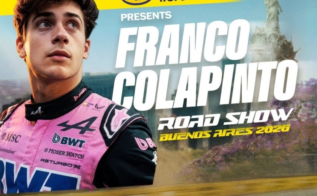 El show forma parte del “Franco Colapinto Road Show Buenos Aires 2026”, que contará además con actividades para el público, fan zones y propuestas vinculadas al mundo de la Fórmula 1.
